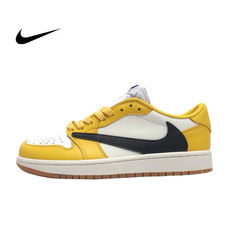 本季亮眼話題款為 nike travis scott aj1 low聯名 倒鈎 低幫籃球板鞋 黃白。亮黃與米白對比鮮明,適合春夏通勤與街頭拍照;以白TEE與工裝短褲呼應鞋身配色,乾淨利落不費力。